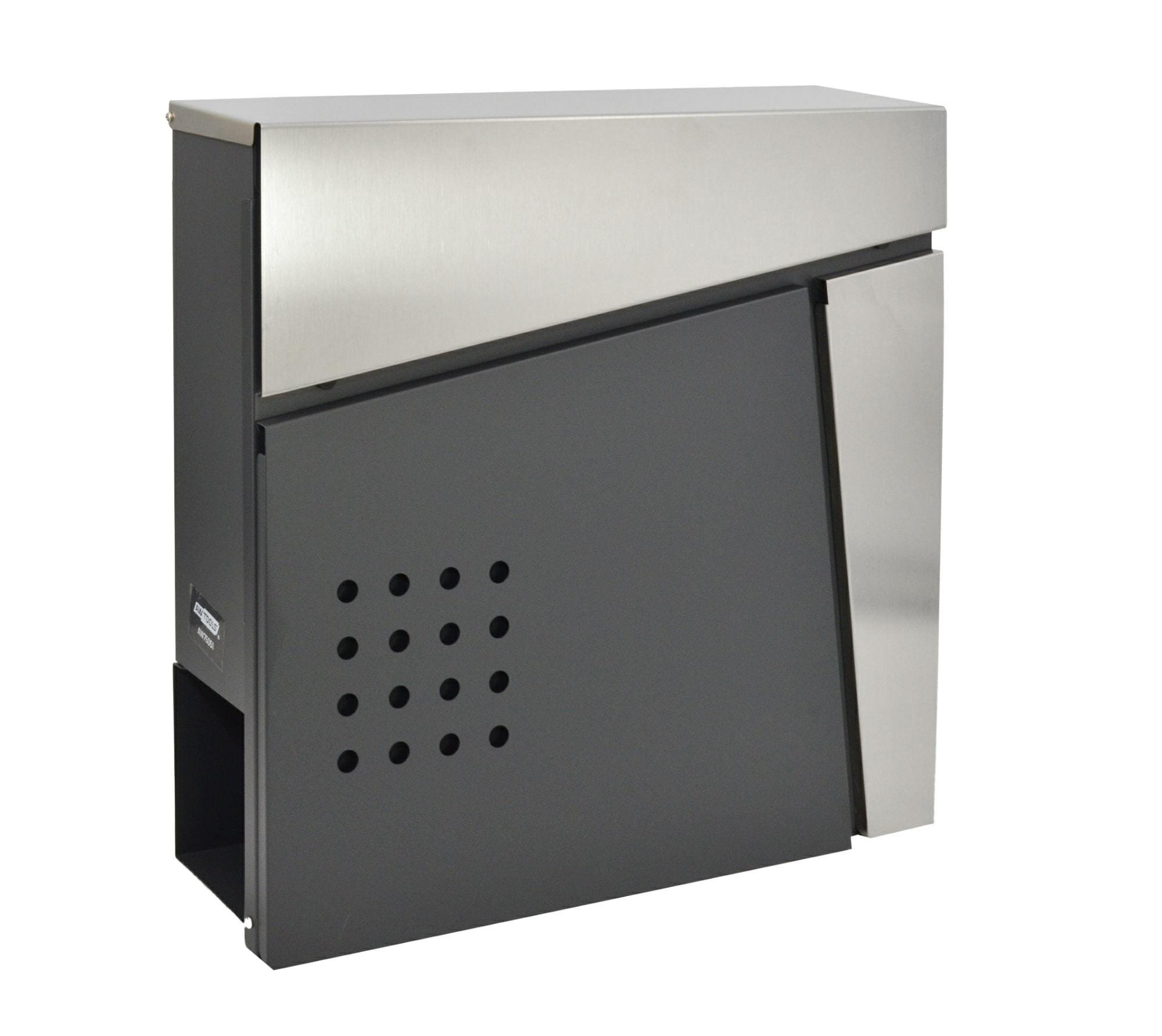 Izdelan je iz visokokakovostnega antracitnega jekla, ki mu daje sodoben in minimalističen videz, medtem ko so detajli iz nerjavečega jekla (inox). Ta kombinacija materialov ne zagotavlja le estetskega kontrasta, ampak tudi izjemno odpornost na vremenske vplive, rjo in korozijo. Pošta bo ostala suha in varna ne glede na vremenske razmere.